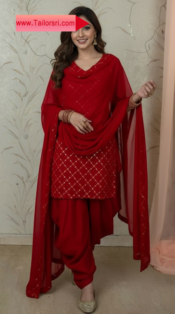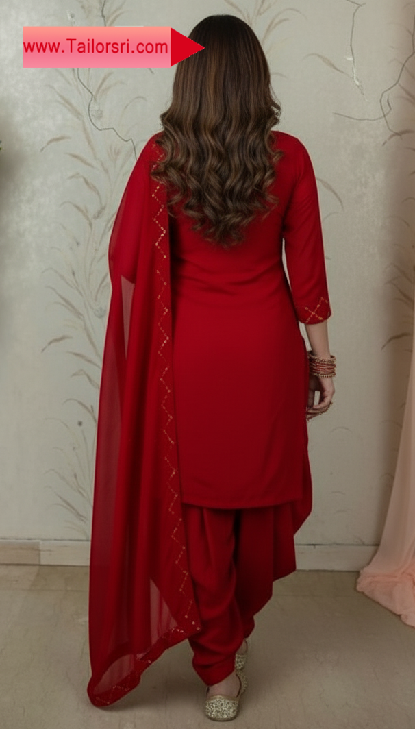 This vibrant blue cotton salwar suit features a short kurti with a classic round neck and full sleeves, adorned with a delicate floral print in shades of pink, orange, and white. The kurti is paired with a traditional Patiala salwar in a solid light blue, creating a comfortable and stylish silhouette. The ensemble is completed with a matching printed dupatta. This outfit is ideal for casual outings, daily wear, and small gatherings, offering a blend of comfort and traditional charm.
